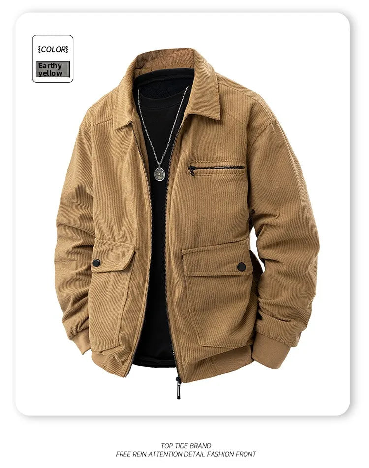 2025 new men's corduroy jacket spring and autumn fashion casual comfortable coat skin-friendly soft and warm jacket
