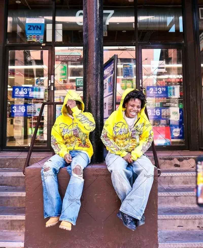 American Retro Letter Casual Loose Zipper Hoodie Men New Street Hip-hop Fashion Y2K Harajuku Oversized Sweatshirt Women