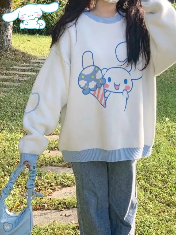 Anime Cinnamoroll Women Sweater Sanrio My Melody Kawaii Autumn Winter Preppy Student Girl Sweater Round Neck Tops Loose Sweet