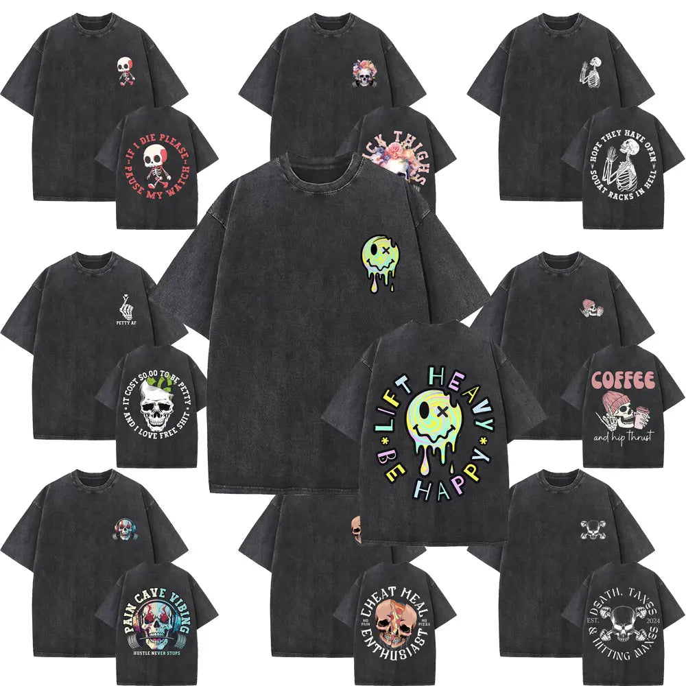Lift Heavy Be Happy Pump Cover T-shirts Funny Powerlifting Workout Bodybuilding T Shirts Men Women Fitness Washed Vintage Tshirt