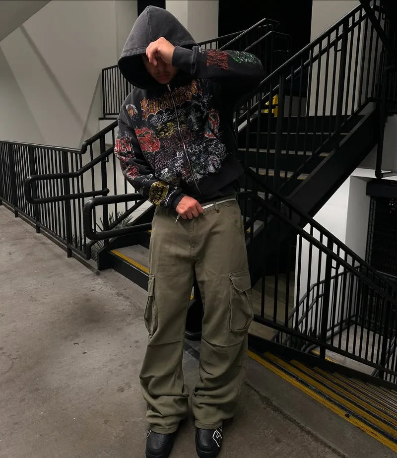 Y2k American Fashion Personality Versatile Anime Printed Zipper Hoodie Men Vintage Goth Dark Style Oversized Sweatshirt Women